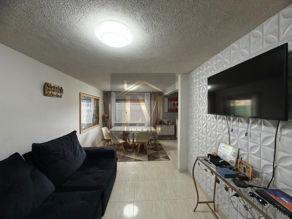 A casa conta com 4 dormitórios, sendo 2 suítes, além de 2 banheiros sociais, sala de estar integrada à sala de jantar, proporcionando um ambiente amplo e aconchegante. Um dos quartos no pavimento superior possui varanda, agregando ainda mais conforto e ventilação natural.